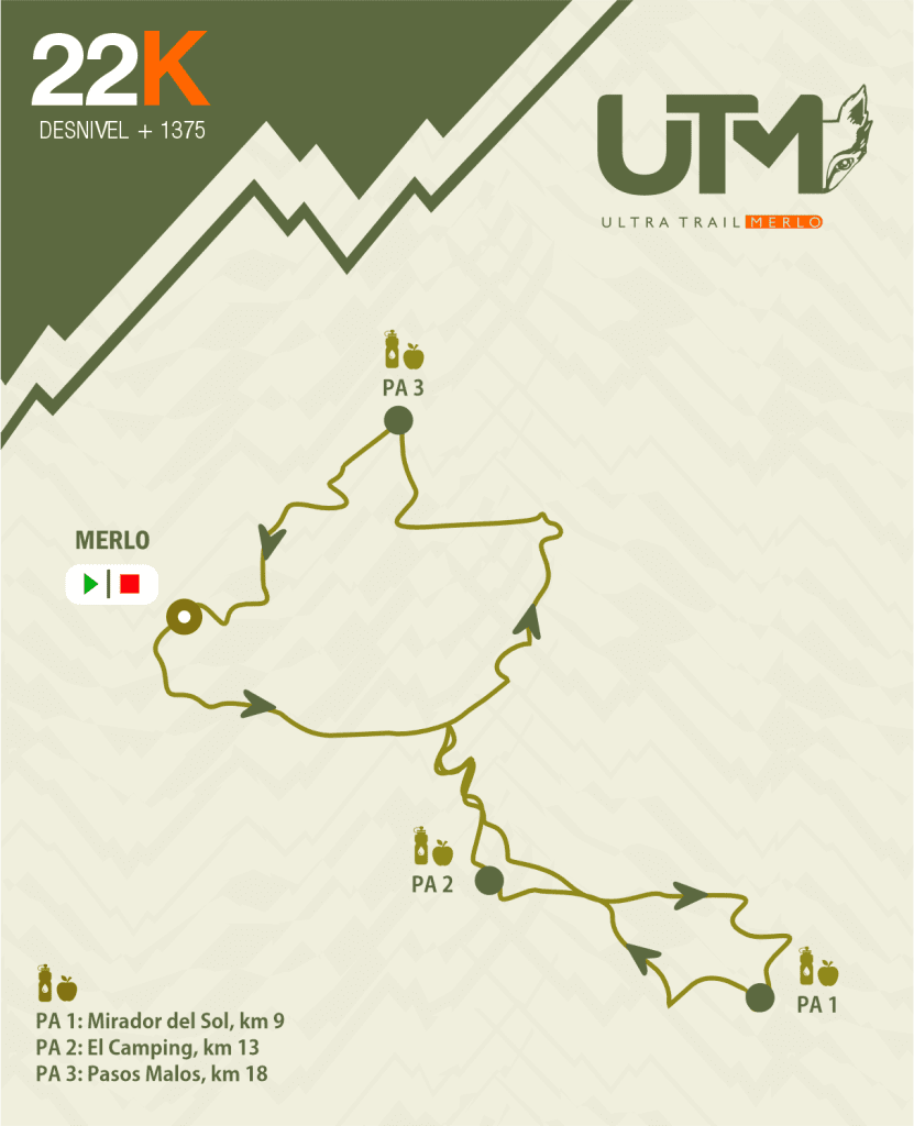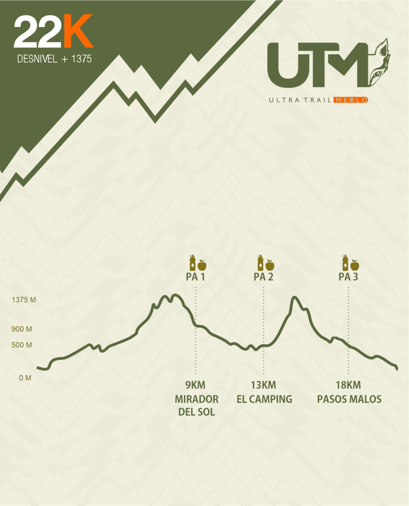 El inicio será rápido y guiado, recorriendo los primeros kilómetros por un camino de ripio en ascenso, transitamos por el pie de las sierras, hasta que personal el staff, los ingresa en una parte de la Reserva Natural por un pequeño costering, huellas de herraduras, cruzando la tirolesa Mirador del Aguila, hasta salir a la desembocadura de la Cuesta de Contursi. Donde transitamos un tramo de asfalto, para llegar al PA1 MIRADOR DEL SOL, KM 9, con +700